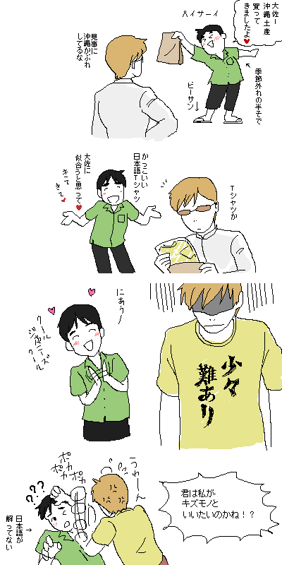沖縄で、すっごい謎なダサTシャツいっぱい売ってました。